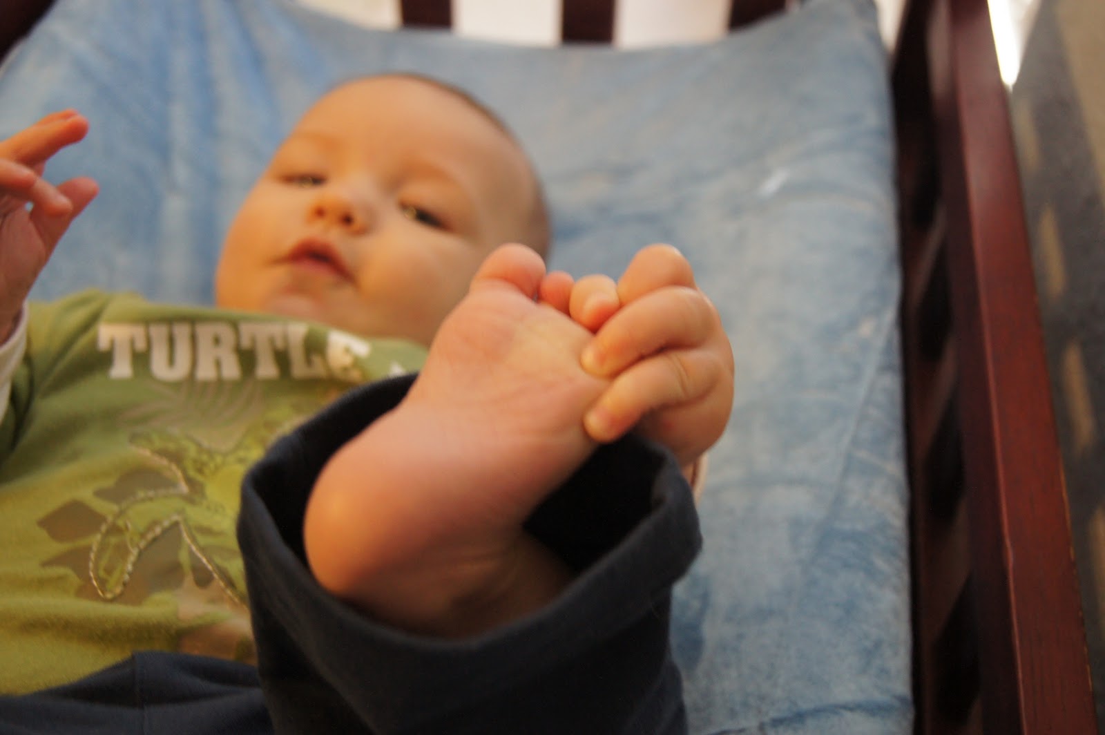 And the play mat goes to the mouth. . . just like everything Zander gets a hold of. |
